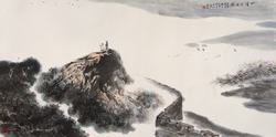 一望大江开。壬申清明前二日,写于近水山庄。亚明。