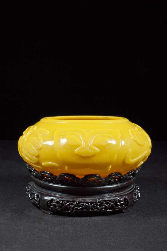 黄料螭龙兽面纹水洗