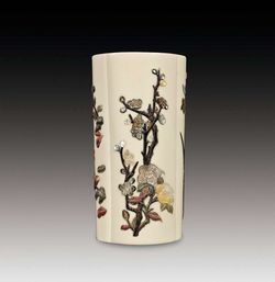 -> 象牙嵌百宝花开富贵笔筒