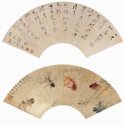 (1)杭人唐云。 (2)闲临池边归鱼戏,忽见开萍作对游。癸未中秋,汪亚尘。
