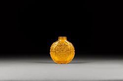 -> 黄色玻璃螭龙纹鼻烟壶