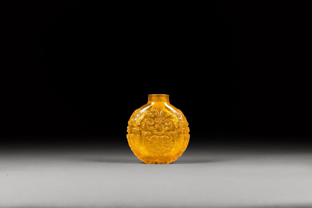 黄色玻璃螭龙纹鼻烟壶