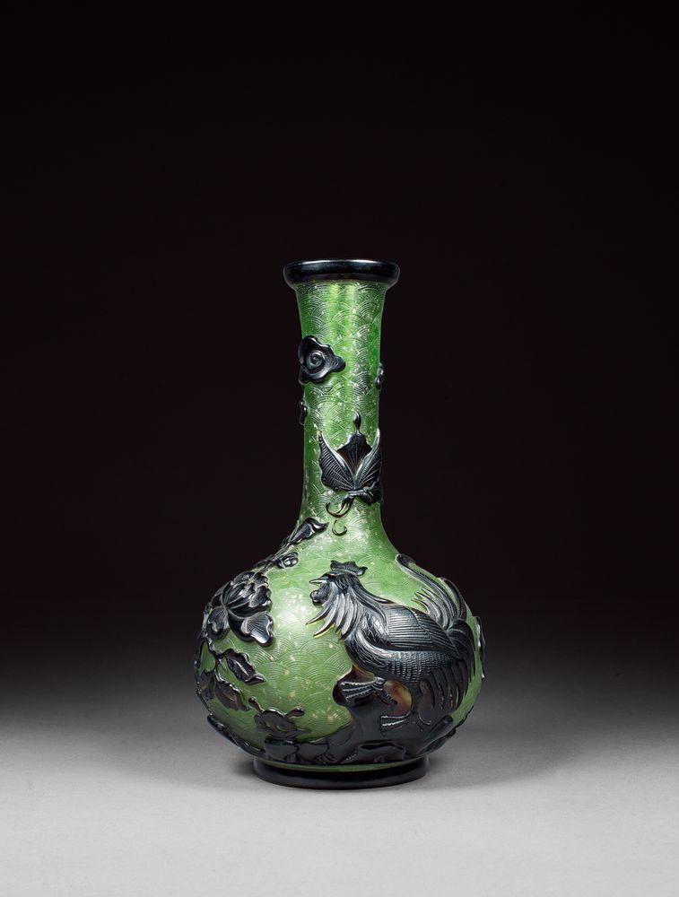 -> 双色套料锦鸡牡丹纹长颈瓶