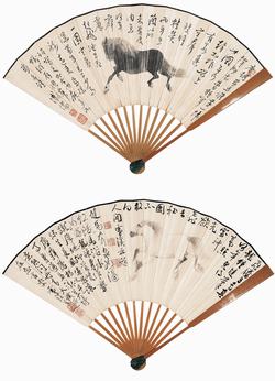 飞腾自是真龙种,健笔何年"鬼"得来。照室神光欲飞去,秘图不敢向人开。雪溪并题;健马奔泉如汤虹,话马浴水如游龙。竦身“佯”势蹴厚地,仰首喷沫生长风。倦思“浓尘痒磨树”,似是马身通马语,莫将意态问丹青。 |