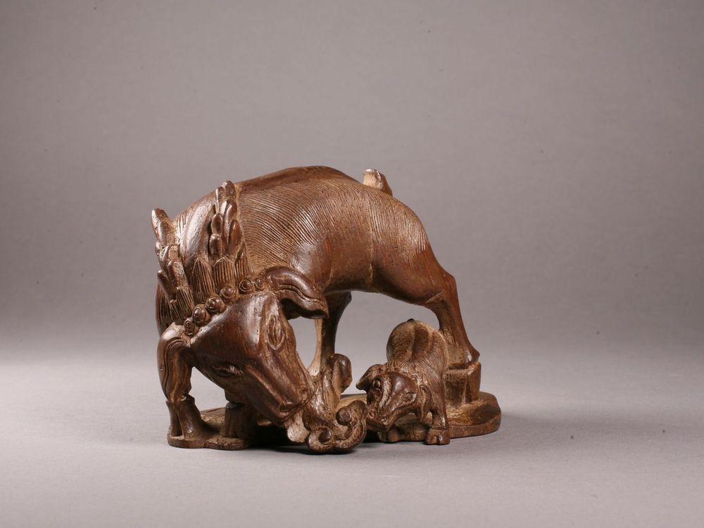 -> 竹雕双羊如意