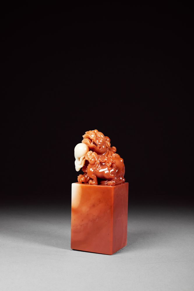 -> 寿山芙蓉巧雕太狮少狮钮印章