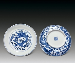 -> 青花双龙戏珠纹盘一对