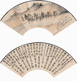 万里明驼足,来从大漠西。边风折草木,落日暮云低。心畬。癸未之夏,出于郊外见此景,因写之。溥佐。