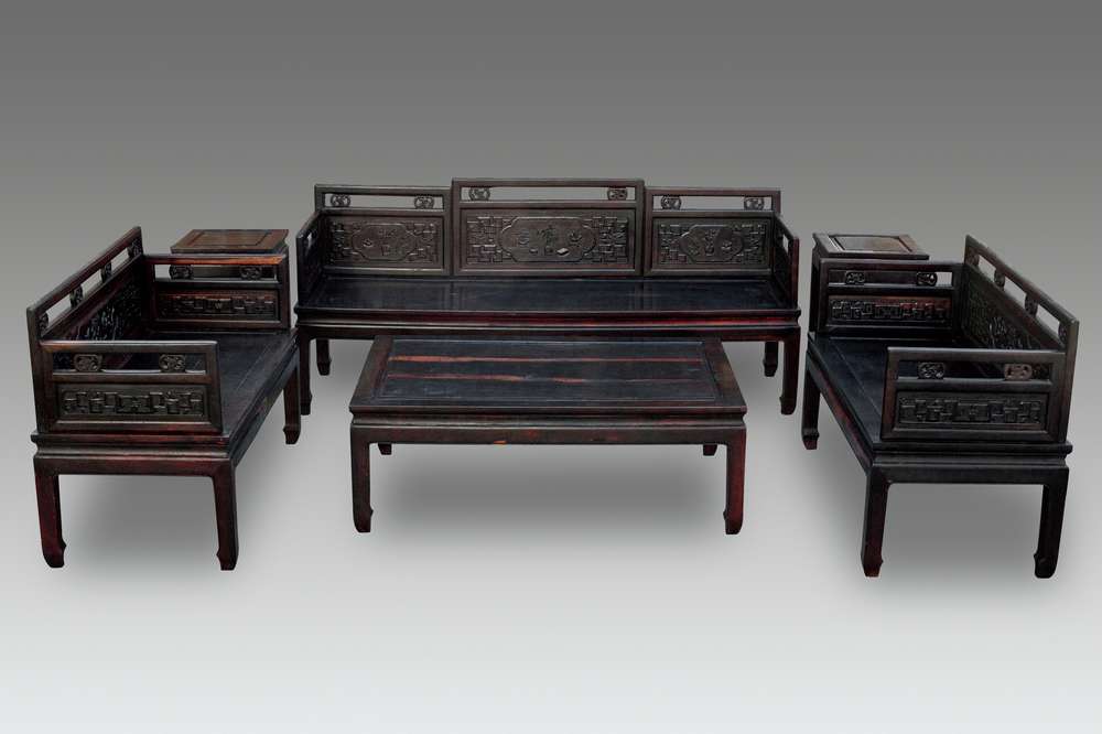 -> 紫檀凳几一组六件