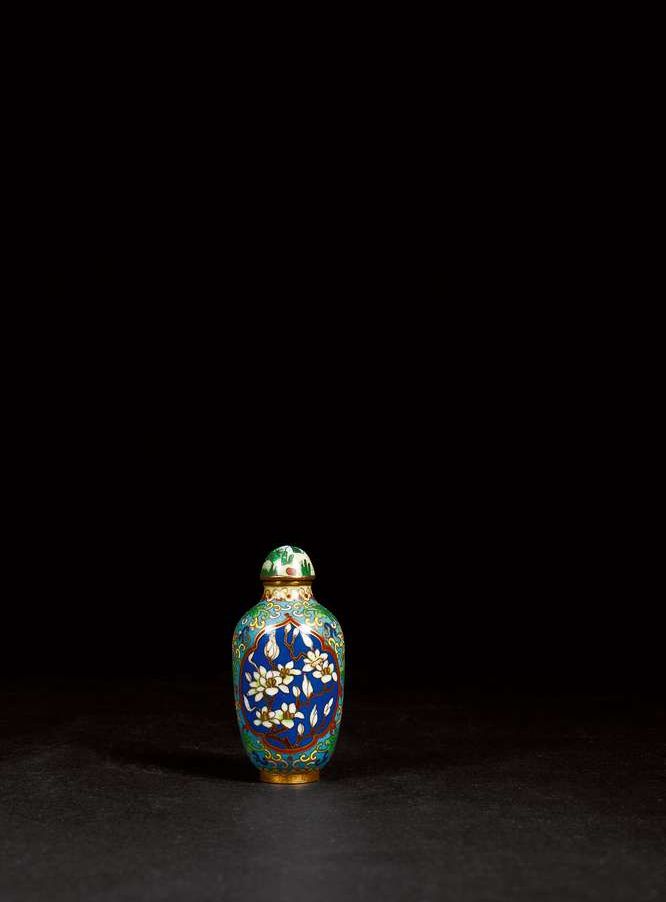 -> 掐丝珐琅开光花卉纹鼻烟壶
