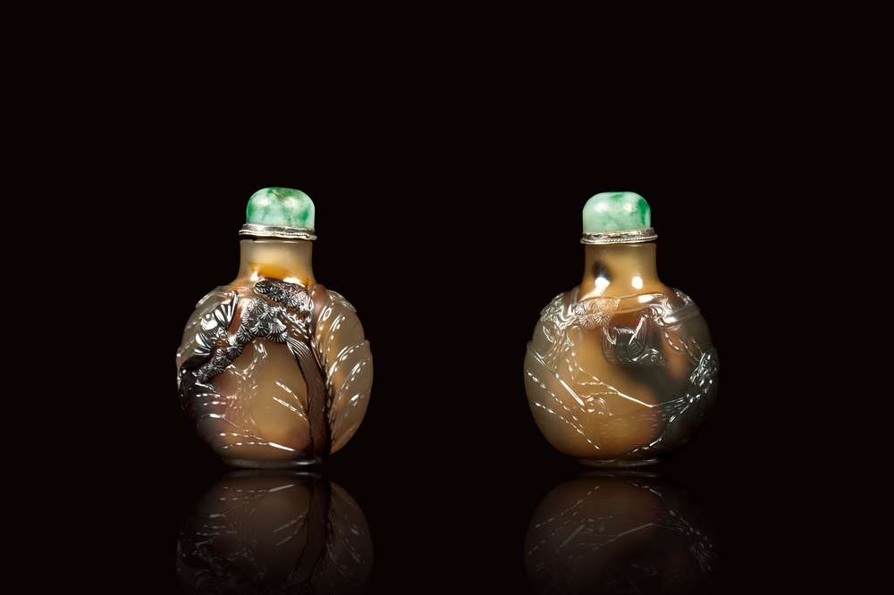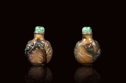 -> 苏作玛瑙巧雕福寿双至鼻烟壶