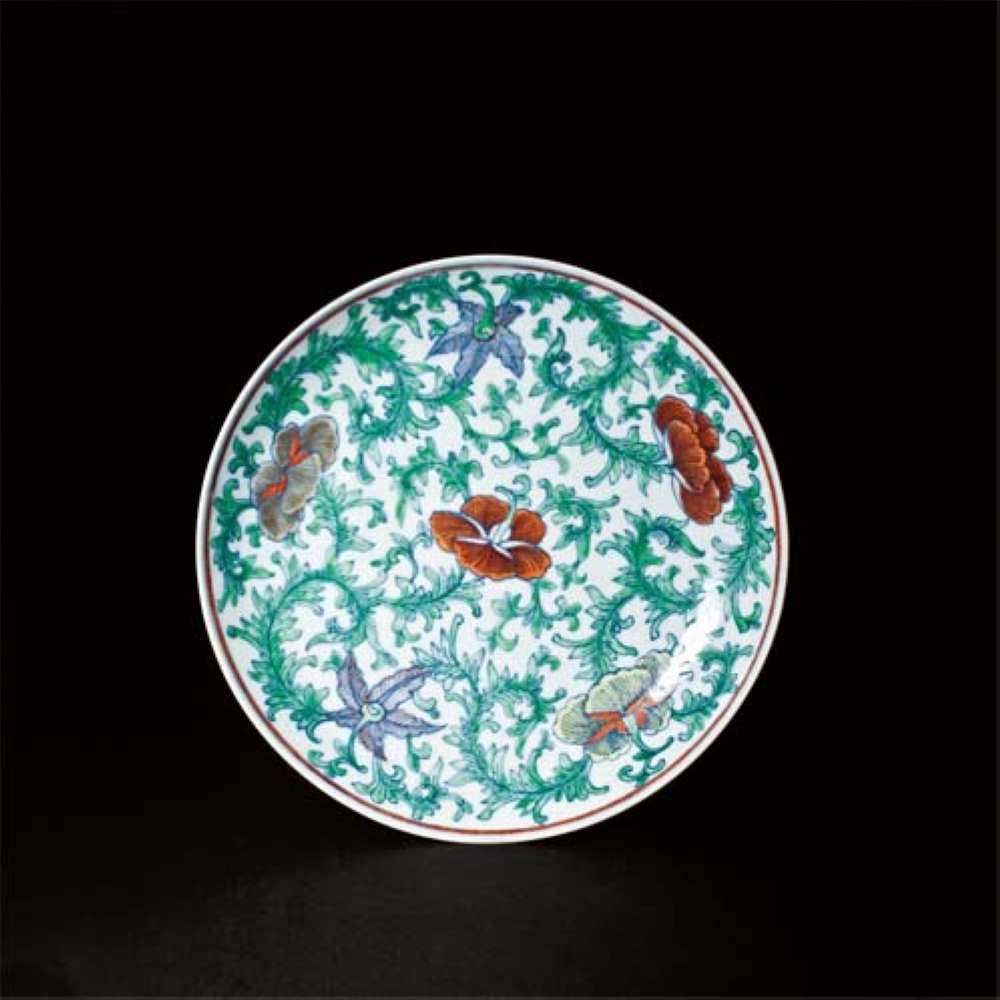 -> 斗彩花卉暗八宝纹盘