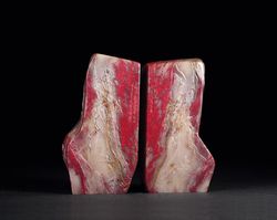 -> 昌化冻地鸡血石薄意随形章一对