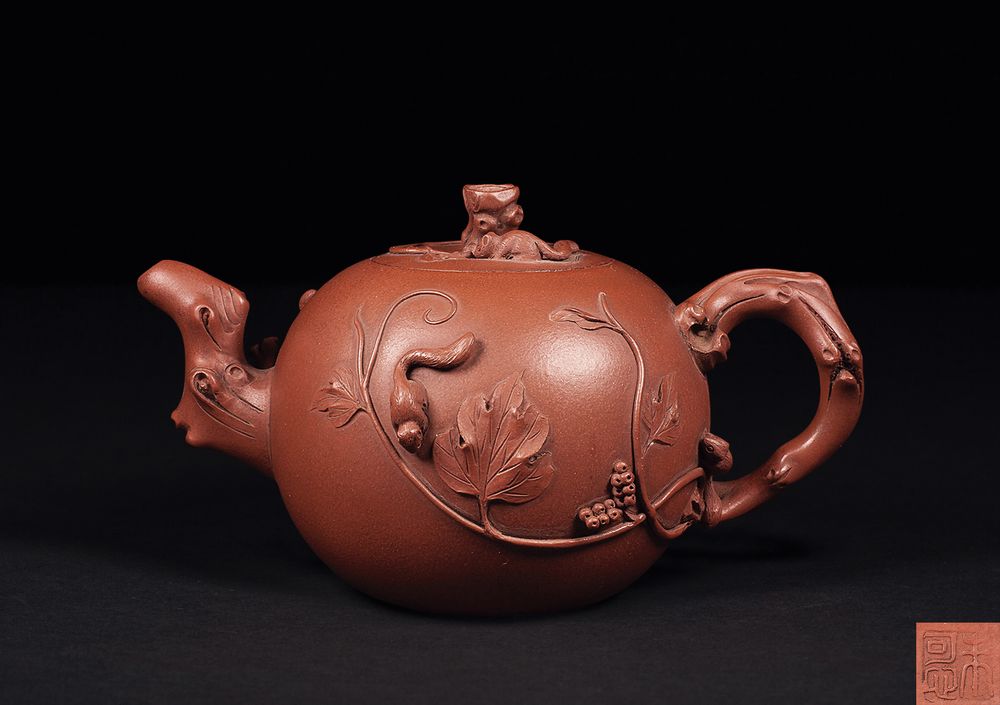 松鼠葡萄图梅桩壶