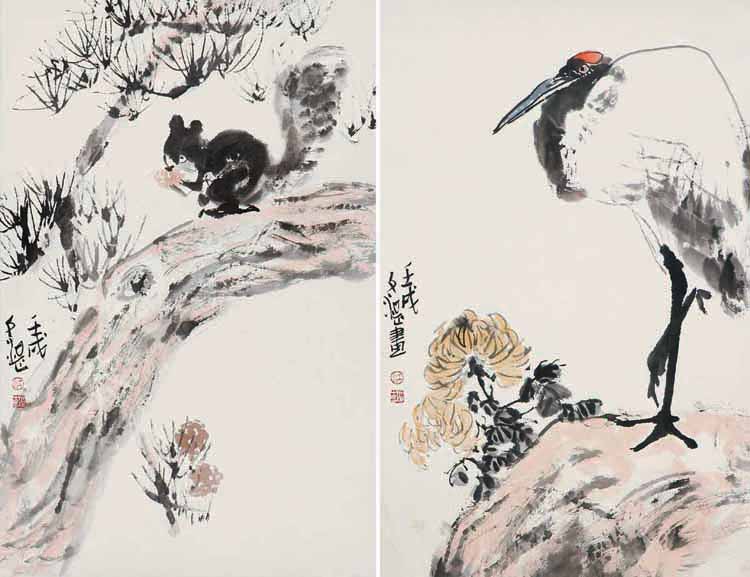 -> 松鼠、鹤