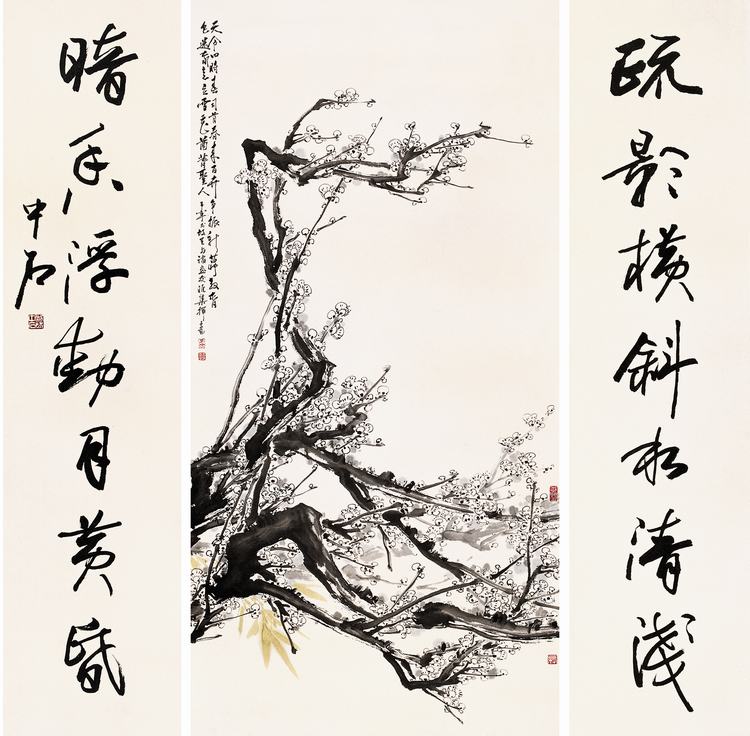 (1)希宁、于希宁印、寒香、长乐(画);(2)欧阳中石(联)